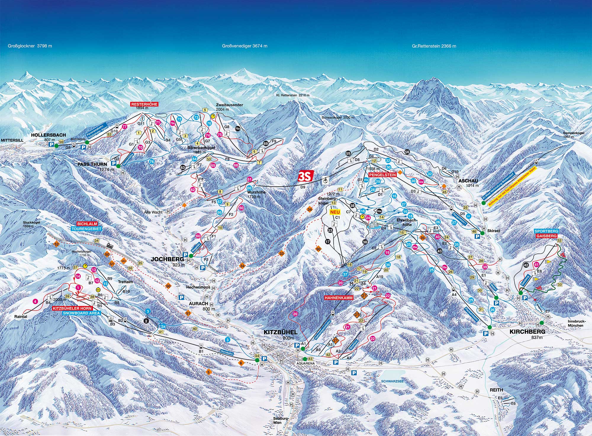 The terrain on the Kitzbüheler Horn is one of Tyrol's most scenic and popular snowboarding areas and home to the local board park. Beginners can take advantage of the wide open blues down from Ehrenbachhöhe, whilst the new 3S gondola opens up a whole new area for the more advanced boarders.